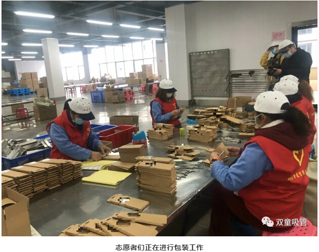 原來,為了有序幫助企業(yè)復(fù)工復(fù)產(chǎn),連日來,由義烏市工會(huì)、婦聯(lián)等政府單位組織的多支志愿者隊(duì)伍來到“雙童”生產(chǎn)一線免費(fèi)當(dāng)“幫工”,解決企業(yè)的燃眉之急。