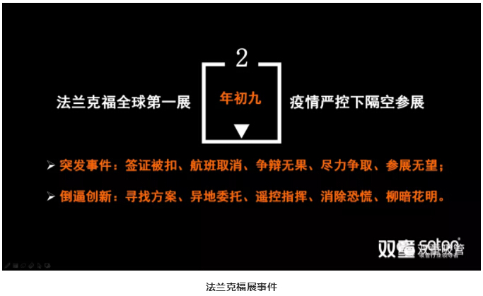 疫情期間發(fā)生的“法蘭克福隔空參展事件”,就是一個(gè)很好的組織效率方式轉(zhuǎn)變的例子(點(diǎn)擊藍(lán)字了解詳情)。