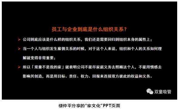 親愛的粉絲們,當(dāng)你聽到“公司就是我的家,持續(xù)發(fā)展靠大家”這樣的口號時(shí),是不是覺得很耳熟?長期以來,不少中國企業(yè)都通過這樣的口號來影響員工,提倡員工把公司當(dāng)成自己的家,早期的“雙童”同樣也不例外。