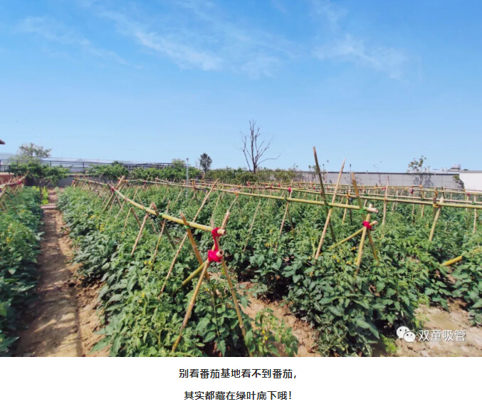 瞧!一根藤上結(jié)出好幾個番茄,大的,小的......在“雙童”空中生態(tài)園聚餐、散步時,還能隨手采摘即食,別有一番味道!