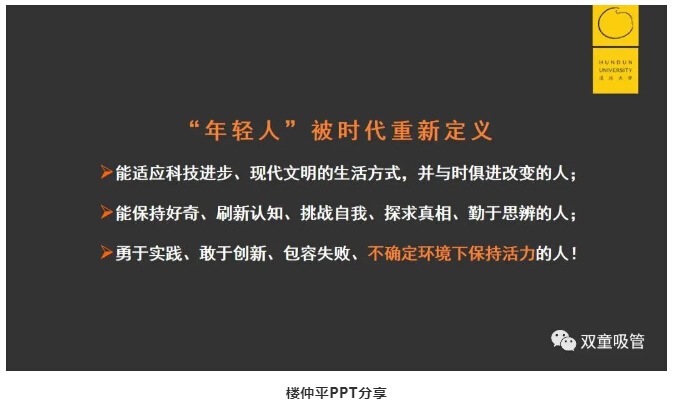 所以,這些年來,樓仲平一直堅(jiān)持向年輕人學(xué)習(xí),創(chuàng)建與年輕人對話和溝通的能力,永遠(yuǎn)將自己定位在25歲,緊追時代步伐,不讓自己成為時代的“棄兒”!