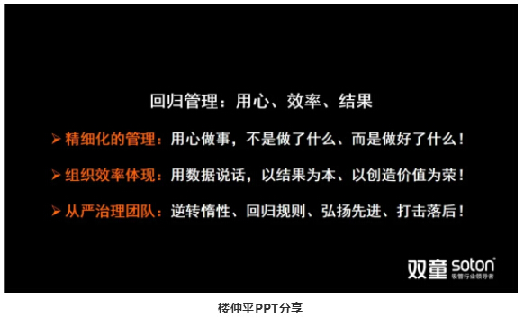 另一方面,樓仲平今年結(jié)束了“雙童”新廠區(qū)的設(shè)計(jì)和建設(shè)工作,準(zhǔn)備將工作重心轉(zhuǎn)回到企業(yè)內(nèi)部,解決企業(yè)近年來(lái)積累下來(lái)的問(wèn)題。