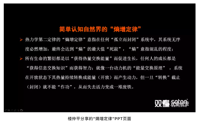 “雙童”樓仲平也曾多次在課程分享中引用熱力學(xué)第二定律的“熵增定律”,把“雙童”存在的問題通過自然的現(xiàn)象加以挖掘、頗析、呈現(xiàn)、對照,從而來尋求問題解決的方法。