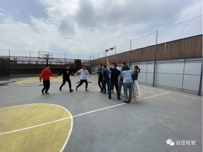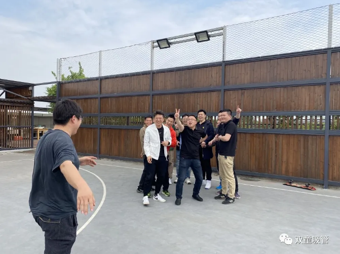 用餐結(jié)束后,同學(xué)們來到“雙童”空中籃球場開展破冰行動(dòng)!活動(dòng)由混沌大學(xué)義烏學(xué)習(xí)中心周上班班主持,大家手牽手玩起了“馬蘭花開”,一個(gè)個(gè)仿佛變回了六歲小孩童。