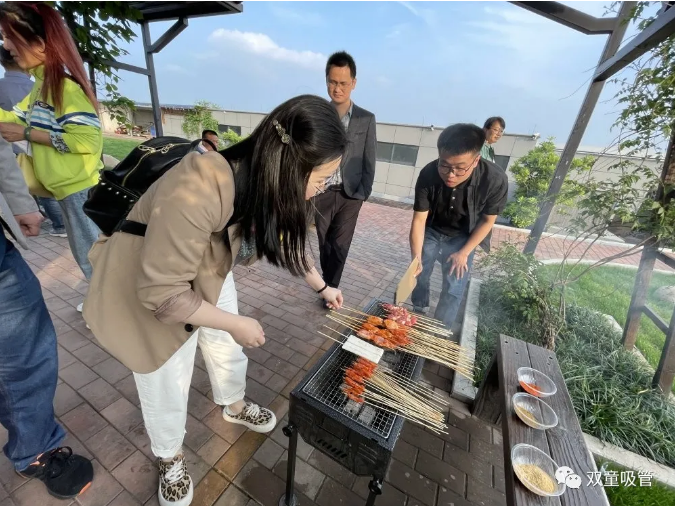 分享結(jié)束,眾人期待已久的燒烤Party安排在“雙童”空中生態(tài)園,伴隨著生態(tài)園里陣陣花香,大家邊吃邊聊,相處甚是融洽!
