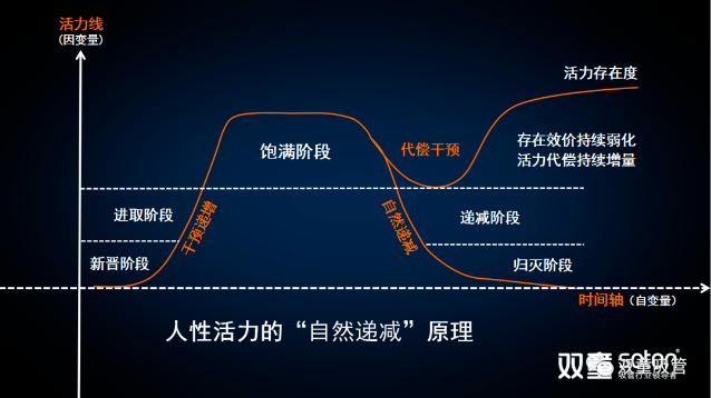 樓老師首先引導(dǎo)大家從組織的角度挖掘出人類最為明顯的三大劣根性——“自我、惰性、老化”。再運(yùn)用“熵增定律”當(dāng)中的人性活力“自然遞減”原理向大家說明了人類稟賦當(dāng)中的一種規(guī)律。