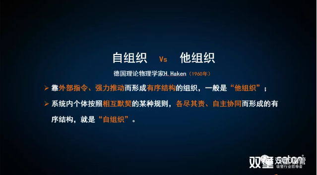 樓老師的分享先給出了答案:“雙童”從2016年之后組織變革的方向是“回歸自組織”:通過組織結(jié)構(gòu)的設(shè)計,讓核心成員對自己所處的工作認(rèn)知從“他組織”(他的組織)轉(zhuǎn)變到“自組織”(我的組織)。