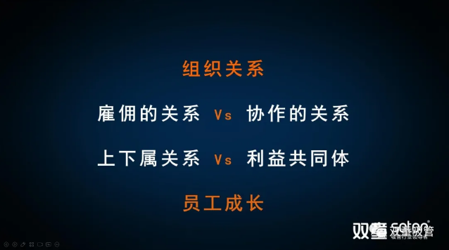 當(dāng)然從經(jīng)濟(jì)學(xué)的角度來講,組織成員之所以要進(jìn)入企業(yè)工作是因為個體獨(dú)立參與市場交易的成本太高,也就是“科斯定理”中交易的雙方在彼此不信任(不斷與陌生人打交道)的前提無法獲得最低成本。而組織搭建了創(chuàng)業(yè)平臺后(解決相互信任后),任何優(yōu)秀的個體都會天然趨向于帶團(tuán)隊“單干”,從而激發(fā)自己呈現(xiàn)出前所未有的活力和創(chuàng)造。