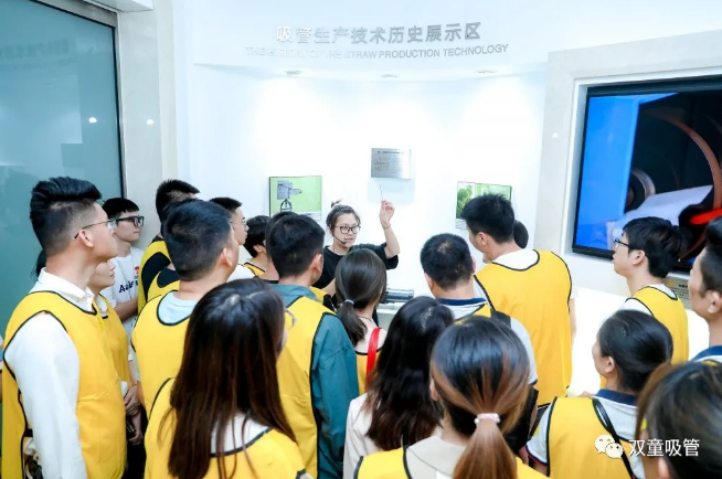 用餐后,同學(xué)們休息片刻便開始了“雙童”游學(xué)之旅。從全球唯一的中國吸管博物館、企業(yè)文化墻、創(chuàng)業(yè)共享平臺、行政辦公區(qū)、節(jié)能降耗系統(tǒng)、無塵車間到五千平米的空中生態(tài)園,一個多小時的游學(xué)之旅帶領(lǐng)大家深度感受了“雙童”的企業(yè)文化。