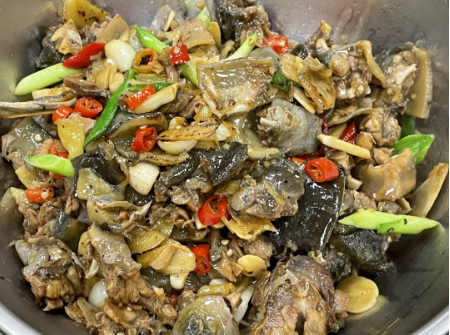除了烤魚,還有餐桌上的重頭戲——烤全羊、酒糟燉雞湯還有紅燒甲魚,每一樣都超大份量,讓大家吃得滿意