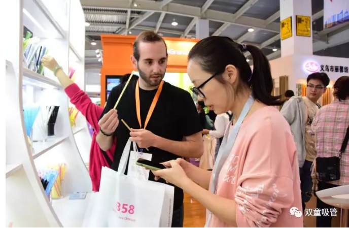 每年義博會,憑借品類繁多、花樣百出的展品,“雙童”都能夠成為展會上的“大明星”,各種腦洞大開、造型奇特的吸管一瞬間就勾起了來往客商滿滿的好奇心,紛紛駐足洽談,每年“雙童”展位都快擠“爆”了!