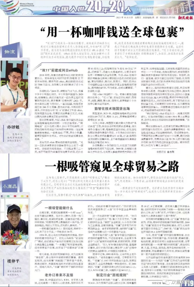 其中,“雙童”樓仲平以一根小小的吸管作為切入點(diǎn),與大家分享了義烏小商品走上全球貿(mào)易之路的故事。下面,就和吸管妞一起來(lái)看看這篇文章吧!
