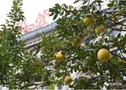 “雙童”廠區(qū)的柚子樹掛果啦