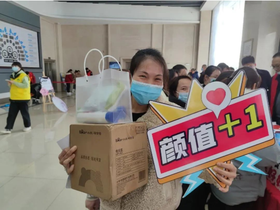 活動的舉辦地點定在雙童二期廠房的一樓大廳,入口大門處有社區(qū)的工作人員專門測量體溫和分發(fā)口罩。大家可以看到活動現場的女神們也是都戴著口罩配合防疫工作,畢竟節(jié)日氣氛少不了,防疫工作也要做好