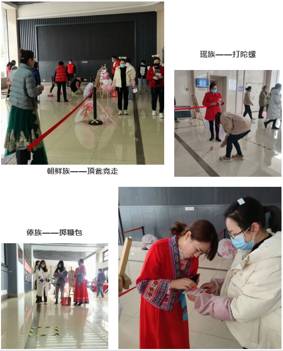 少數民族志愿者穿著絢麗的民族服裝,引導女職工們體驗各具特色的民族互動小游戲。