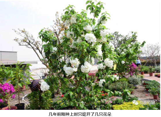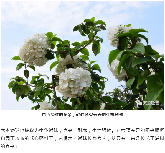 雙童:屋頂花園的繡球花開正當時!一簇簇潔白花朵、連成一片猶如美麗的云彩!