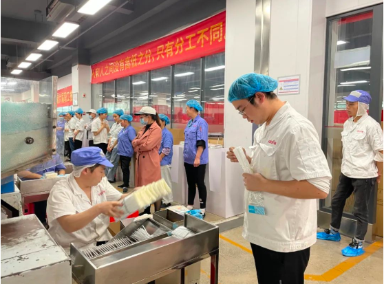 包裝崗位操作流程繁雜,責任重大,包裝效率僅僅是對員工的基本要求,在工作過程中更要求員工有品質(zhì)意識,檢出不良品,防止不良品流出,責任意義重大。大賽中選手們不止要追求速度,更要把握好質(zhì)量,因為正是生產(chǎn)一線這些看似平凡的崗位,卻承載著“雙童”近三十年的產(chǎn)品質(zhì)量和口碑。