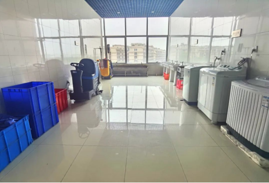 首先,是清洗場所?!半p童”的工服洗衣房就和車間清洗間配置在一起,既聯(lián)通車間,提高工服來回運送的效率,又能夠保持相對獨立,不影響生產(chǎn)。這里的洗衣工具齊全,既有機洗區(qū)域,也有供斷電情況使用的手洗池。