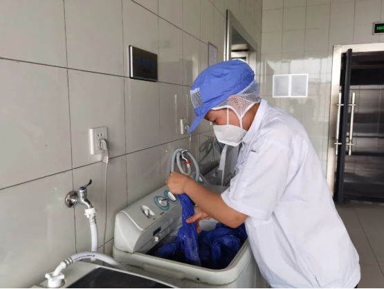 除了清洗,洗衣工也要對工服的質(zhì)量進行檢查,確保工服的穿著感受良好。如果有掉扣子的情況,洗衣工會及時進行縫補;要是工服出現(xiàn)了大面積損壞,則會進行記錄,將其進行報損并統(tǒng)一處理成清洗抹布。