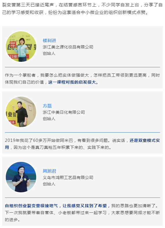 學(xué)員為創(chuàng)業(yè)裂變營(yíng)“代言”