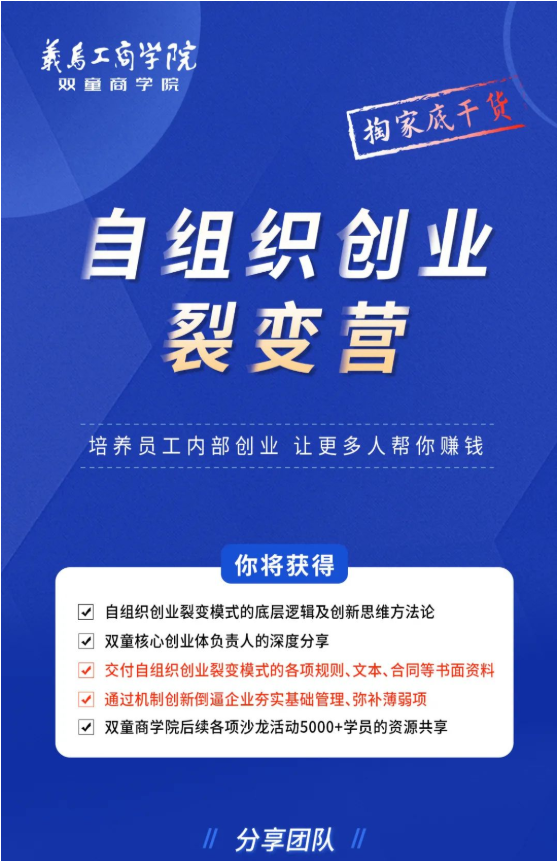 別再猶豫!你需要自組織創(chuàng)業(yè)裂變的助推力!趕快行動(dòng)起來(lái),一起相約在雙童商學(xué)院吧!