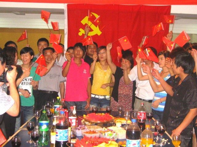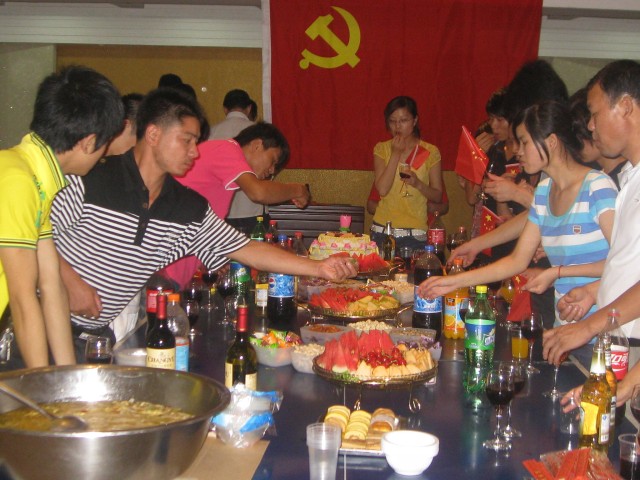 佳肴擺滿桌,美酒斟滿杯,當大家一起高舉酒杯,大聲祝福我黨90周年生日快樂的時候,晚會的氣氛到達了高潮,參加紅色生日Party的員工們都揮舞著紅色的小黨旗,共同祝愿我們的黨、我們的祖國蒸蒸日上,更加富強!