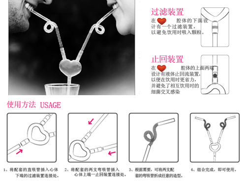 全新獨創(chuàng)設計的“情侶吸管”,給幸福浪漫的情侶溫馨實現(xiàn)共享一杯,在增進默契下讓感情交流的更順暢。