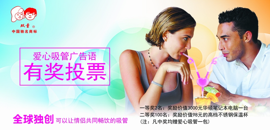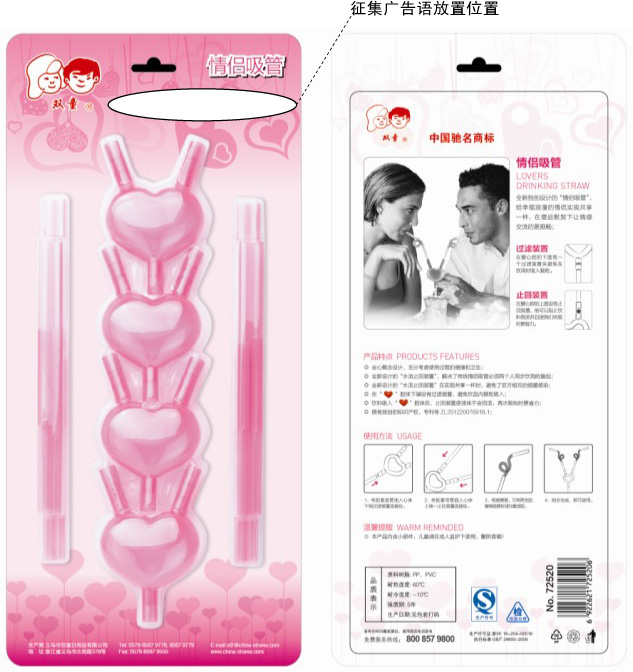 被征集的廣告語(yǔ)將用于我們 “愛心吸管”產(chǎn)品所有包裝正面的廣告詞。