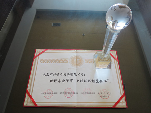 六月五日是世界環(huán)境日,就在今天,我公司又在環(huán)保方面獲得了一份殊榮,在由中共金華市委宣傳部、金華市經信委、金華市環(huán)保局、金華日報社聯(lián)合主辦的金華市“青年汽車杯”“十佳環(huán)保模仿企業(yè)”評選活動中,我公司獲得了“十佳環(huán)保模仿企業(yè)”稱號,是義烏所有企業(yè)中唯一一家獲此榮譽的企業(yè)。雙童公司作為2l世紀的新型企業(yè),我們有責任有義務把生產經營活動同自然環(huán)境、社會環(huán)境的發(fā)展聯(lián)系起來,妥善處理各種利益關系,為我們的美好明天而努力創(chuàng)造一個更美好的綠色企業(yè)。
