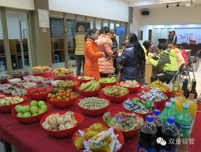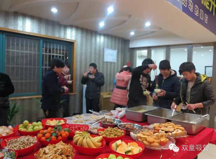 昨天晚上,我們雙童吸管的九樓閣迎來了2015年第一場生日會!來自各個車間、各個崗位的1月壽星們紛紛來到9樓,參加這場別開生面的生日會!而為了這場生日會,我們最新上任的后勤美女主管宋小翩更是下足了心思,把一切事宜都準(zhǔn)備得井井有條,看看這擺盤,誘人不?