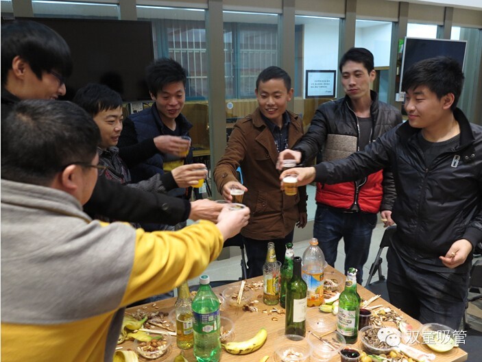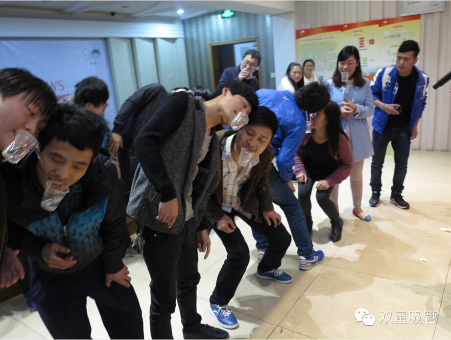 3月28日晚, 雙童吸管春節(jié)后的第一次員工生日(二、三月份)派對在九樓天臺上快樂舉行!燒烤配啤酒、點心配紅酒,瓜果配飲料,首先這吃喝上得讓壽星們滿足嘍才能有力氣參與我們精心準(zhǔn)備的各類小游戲?qū)Σ唬?/p>