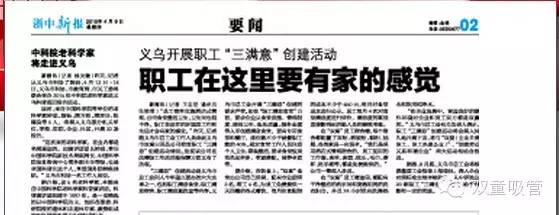 “在企業(yè)發(fā)展中,營(yíng)造良好的硬件環(huán)境對(duì)企業(yè)和員工雙方都是雙贏的?!绷x烏市總工會(huì)有關(guān)負(fù)責(zé)人表示,職工“三滿意”創(chuàng)建活動(dòng)將會(huì)深入持久地開展下去,將與“雙愛(企業(yè)關(guān)愛職工、職工熱愛企業(yè))”、“創(chuàng)建勞動(dòng)關(guān)系和諧企業(yè)”兩大活動(dòng)相結(jié)合推進(jìn)。