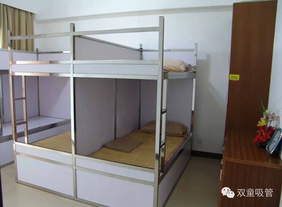 在“雙童”員工宿舍樓,每個(gè)宿舍都配置了衣柜、棉被柜、鞋柜、抽屜,各類家具一應(yīng)俱全?!拔覀兪遣捎镁频晔焦芾硭奚岬模瑔T工使用的工作服、床單、床套、枕頭、毛巾、茶杯、洗手液等,都是免費(fèi)提供的?!惫疽还芾砣藛T說。