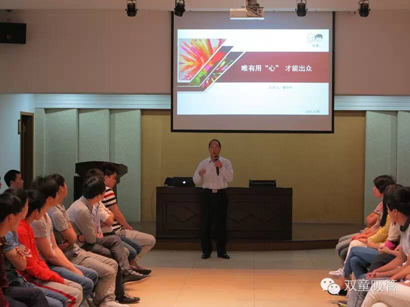 五一放假回來(lái)這兩天的雙童九樓閣,連大白天都熱鬧得很。這是為什么呢?原來(lái),二車間作為我們吸管生產(chǎn)的拳頭車間,在五一假期后并沒(méi)有急于恢復(fù)生產(chǎn),而是全車間都接受了由公司組織,眾多雙童學(xué)習(xí)會(huì)的講師積極響應(yīng)參與的員工培訓(xùn)會(huì)!昨天是生產(chǎn)廠長(zhǎng)和文宣部主管的專場(chǎng),給大家伙講述了生產(chǎn)質(zhì)量以及工作態(tài)度方面的課程,而今天的一整天時(shí)間,都由我們的董事長(zhǎng)樓仲平 親自給二車間的全體員工帶來(lái)《唯有用“心” 才能出眾》專題課程!