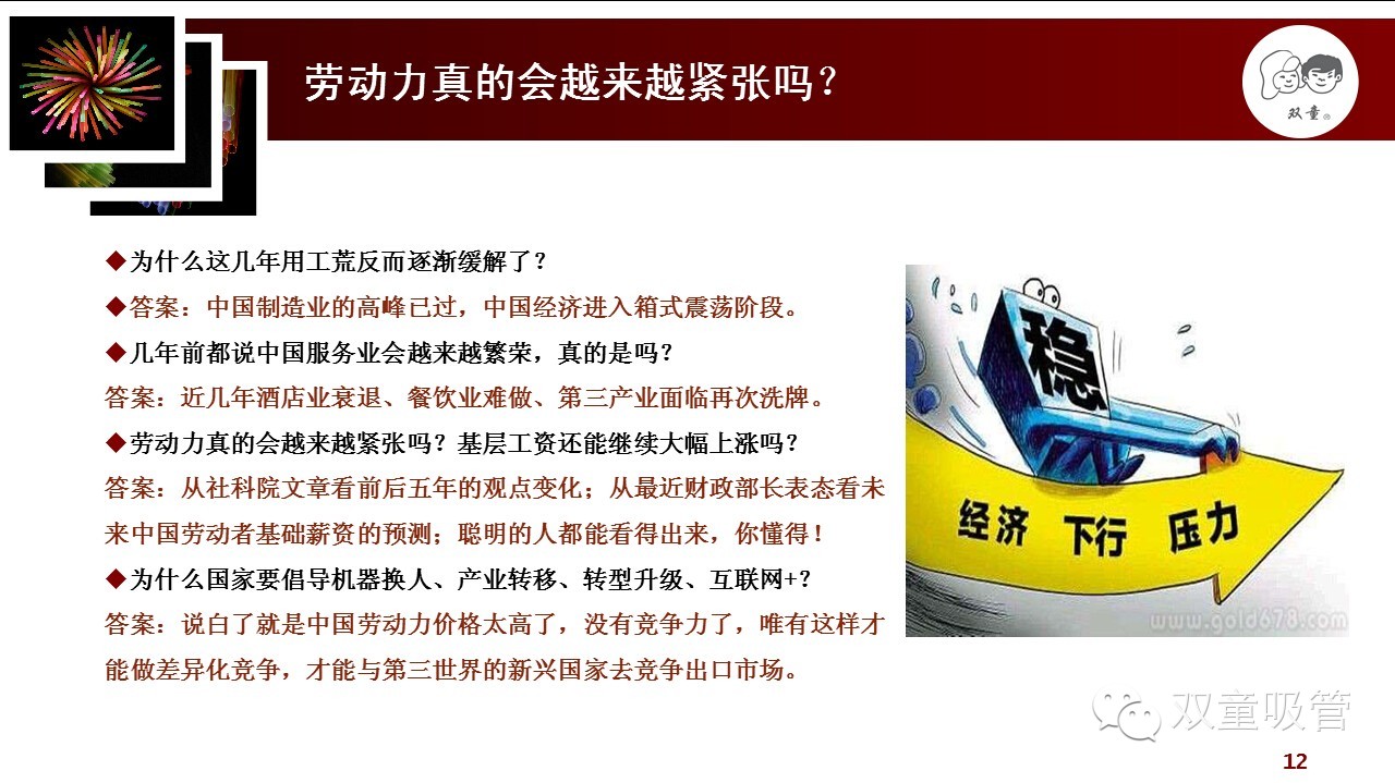 第一部分,董事長(zhǎng)用宏觀的角度給大家講述了中國(guó)制造業(yè)企業(yè)的整個(gè)大環(huán)境發(fā)生的變化以及用工形式,為了讓在座的基層員工們能夠聽(tīng)懂,他選擇了最淺顯易懂的語(yǔ)言來(lái)講述這個(gè)課程,充分利用了數(shù)據(jù)、舉例、比較等形式,讓員工意識(shí)到:唯有用“心”才能出眾。國(guó)家如此、企業(yè)如此、員工也如此!