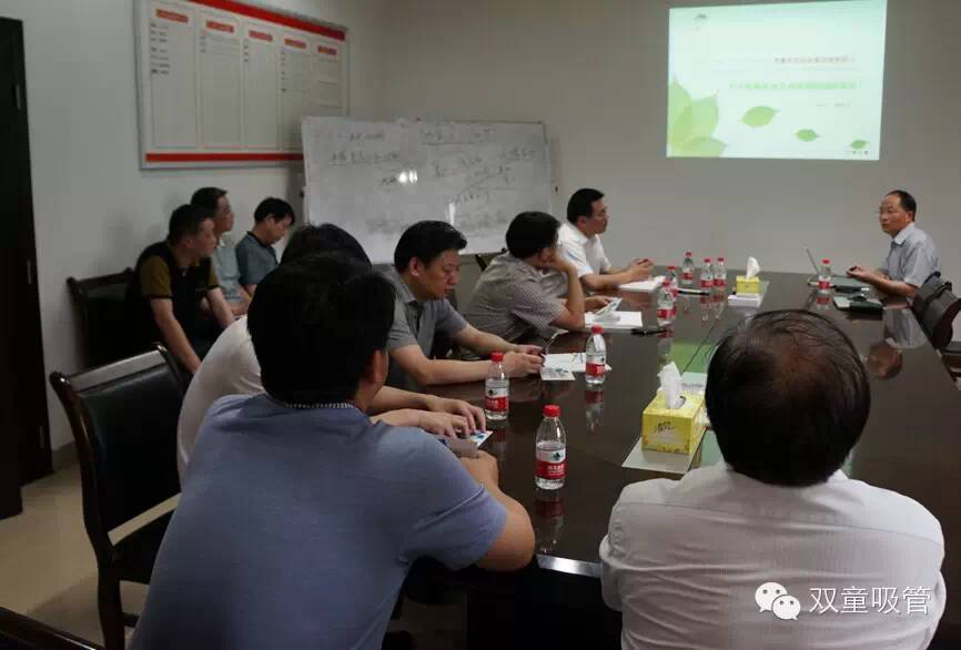 在交流過程中,領(lǐng)導(dǎo)們提出要詳細(xì)聽聽我們雙童的節(jié)能降耗工作。當(dāng)家人直接把領(lǐng)導(dǎo)們請到了我們的會議室,用PPT講解的形式向領(lǐng)導(dǎo)們說明了我們的各個節(jié)能降耗系統(tǒng)的工作原理以及產(chǎn)生的社會效益。