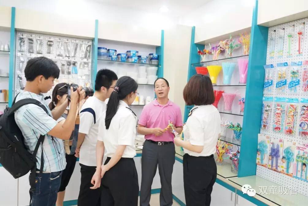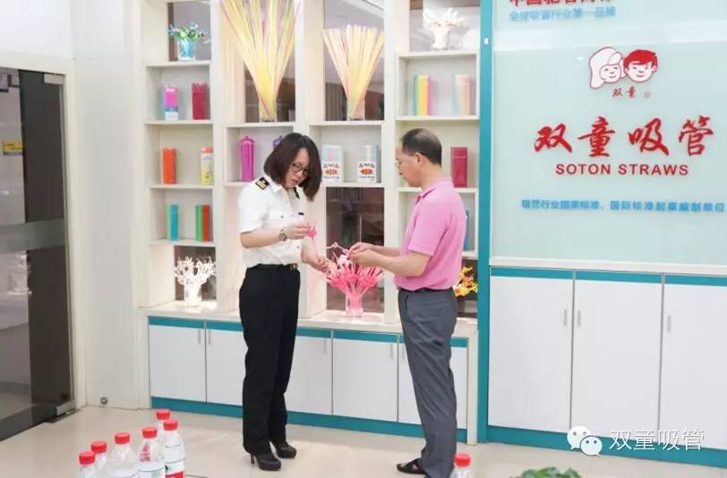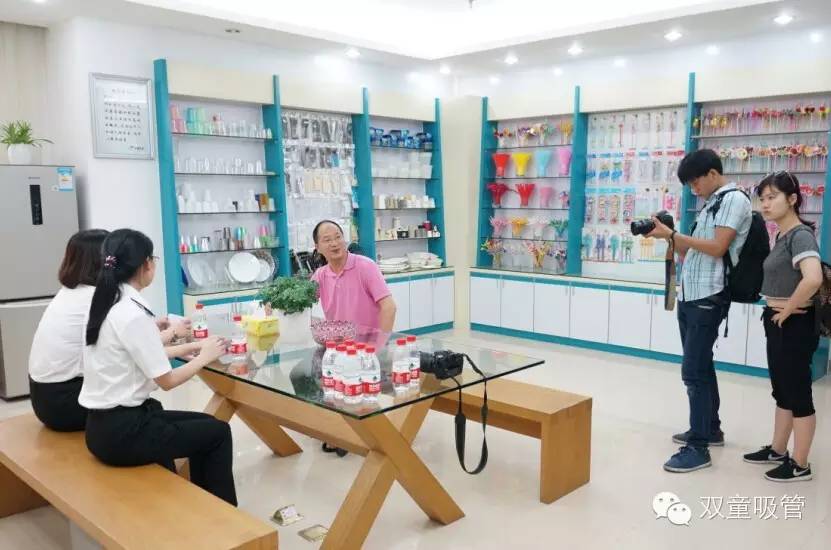 首先第一站就是我們的樣品房。樓總詳細的向客人介紹了雙童近年來產品轉型升級的一些代表產品,如愛心吸管、哈哈吸管等。在看到賦予了更多使用功能與感情色彩的創(chuàng)新吸管產品之后,客人們也都是紛紛稱贊,驚嘆之心溢于言表!
