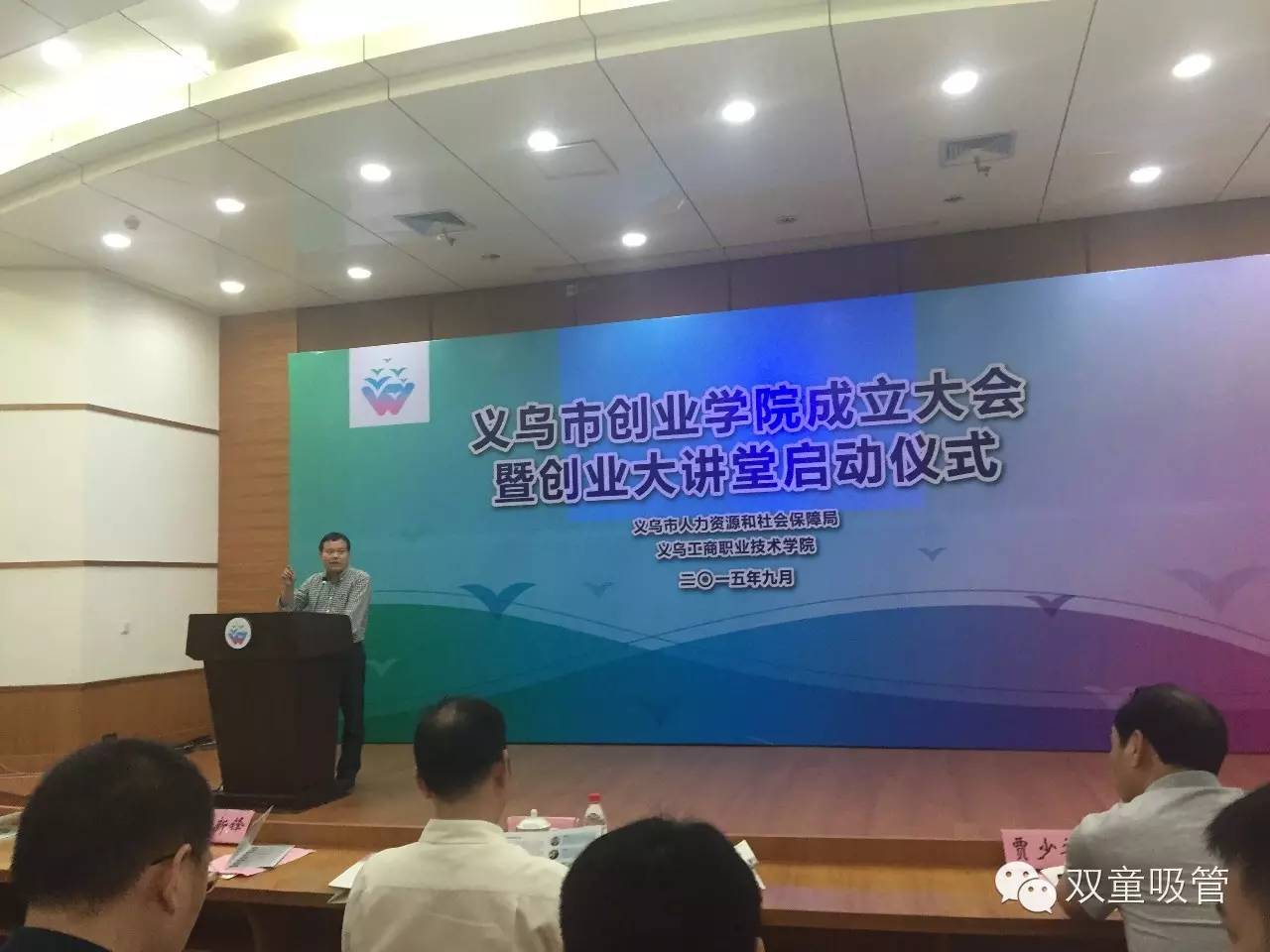 義烏市副市長(zhǎng)王新鋒到場(chǎng)致辭,工商學(xué)院副書(shū)記、副院長(zhǎng)賈少華教授主講創(chuàng)業(yè)大講堂。創(chuàng)業(yè)學(xué)院聘任了12位首批創(chuàng)業(yè)導(dǎo)師,我們當(dāng)家人樓總也在此行列中!