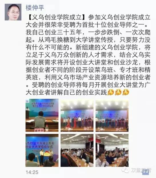 當(dāng)家人樓總也有感于義烏創(chuàng)業(yè)學(xué)院成立之時(shí)在朋友圈發(fā)表了自己的感言: