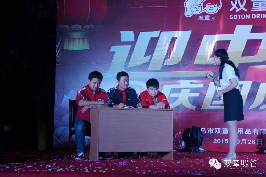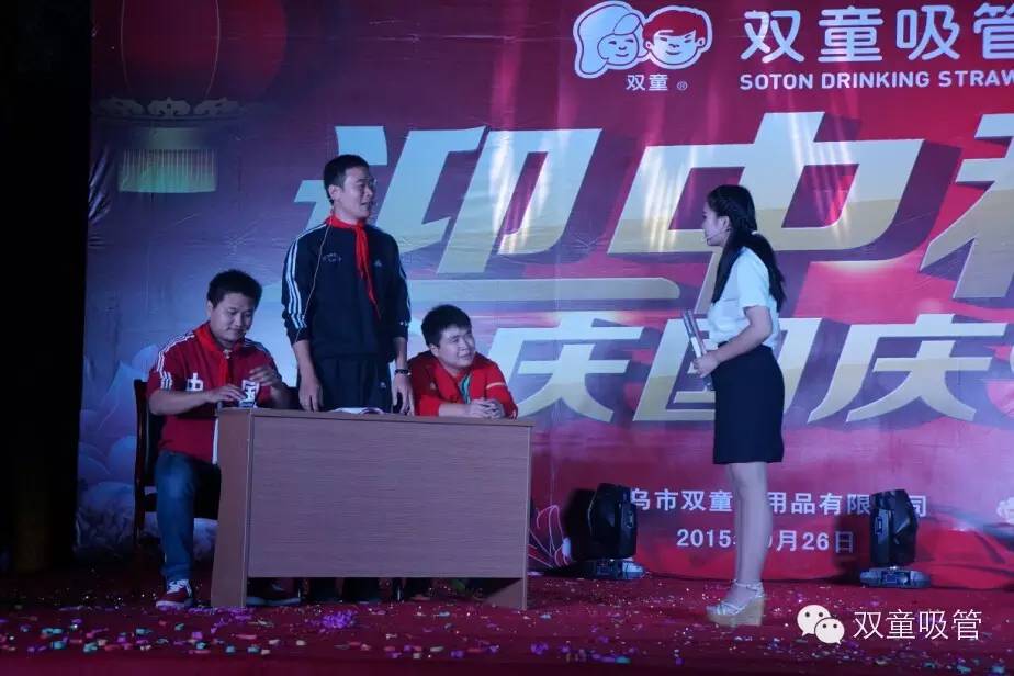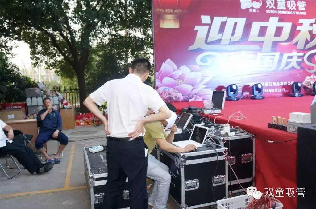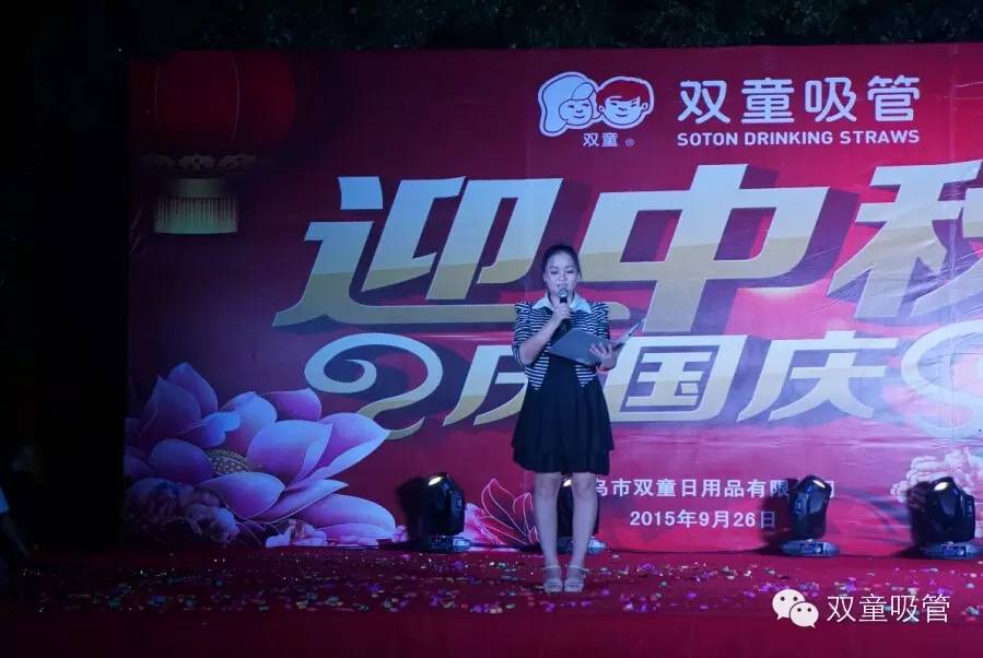 9月26日晚,在雙童廠區(qū)內(nèi),我們舉辦了一場(chǎng)盛大熱鬧的“迎中秋,慶國(guó)慶”文藝晚會(huì),全廠員工都匯聚臺(tái)下參與晚會(huì)互動(dòng),節(jié)目那是相當(dāng)精彩,類型那是相當(dāng)?shù)呢S富!作為主持人和參演人員的吸管妞,經(jīng)過兩天的修養(yǎng),迫不及待地想和大家分享回顧一下節(jié)目的精彩盛況啦!