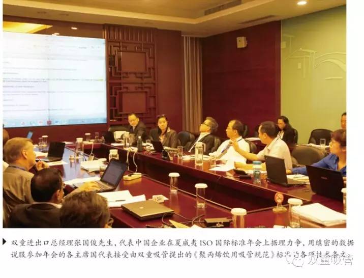 2008年《聚丙烯飲用吸管》國家標(biāo)準在義烏天恒酒店審核通過標(biāo)準起草委員會成立后,雙童吸管代表中國企業(yè)會同國家標(biāo)準化委員會專家小組,在2012年6月初召集國內(nèi)吸管行業(yè)的十多家生產(chǎn)企業(yè)在義烏天恒酒店召開了《聚丙烯飲用吸管規(guī)范》國際標(biāo)準國內(nèi)分組研討會,通過與會企業(yè)和標(biāo)委會專家的討論分析,決定采用屬地原則的有利條件,在中國國家標(biāo)準的基礎(chǔ)上進行國際標(biāo)準的條文延伸和編輯,以在最大程度上有利于中國吸管行業(yè)企業(yè)的健康發(fā)展。
