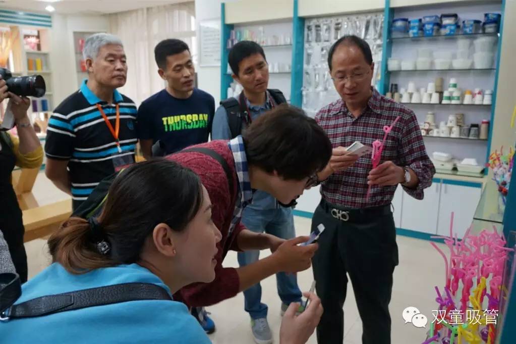 接著,網(wǎng)絡媒體團的一行眾人先是來到了位于綜合樓二樓的創(chuàng)新吸管樣品室,由樓總向眾人介紹我們的一系列創(chuàng)新吸管產(chǎn)品。一款款創(chuàng)意十足、富有童真的創(chuàng)新吸管引起了大家的強烈關注,尤其是幾位女記者們,簡直是愛不釋手!而當看到我們的可降解吸管時,則紛紛點頭贊許雙童的環(huán)保理念。
