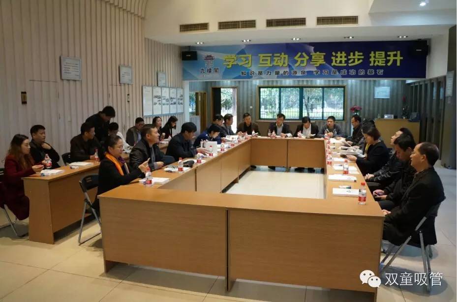 參觀完畢后,大家在九樓閣里開了一個小型的“學習會”,當家人樓總向他們全面介紹講述了關于雙童吸管的種種方面,也是贏得了在座的各位客人們的一致掌聲!講述后,大家和樓總進行了積極的互動,從企業(yè)經營的各個方面向樓總發(fā)問,大家一起相互交流溝通,共同進步,共同提升!
