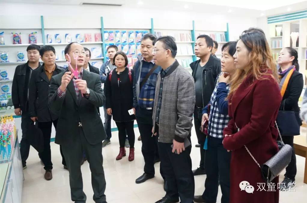 隨后,大家來到了樣品房,樓總給眾人介紹了雙童一路走來的艱苦歷程以及一直以來堅持的理念,和不斷創(chuàng)新的精神,客人們都頻頻點頭,表示認同樓總的觀點和做法。樓總表示,除了專注吸管外,企業(yè)一定要重視創(chuàng)新,并給各位教授們介紹了雙童各色的的吸管,這些不同功能不同設計的吸管讓大家感覺新奇異常。