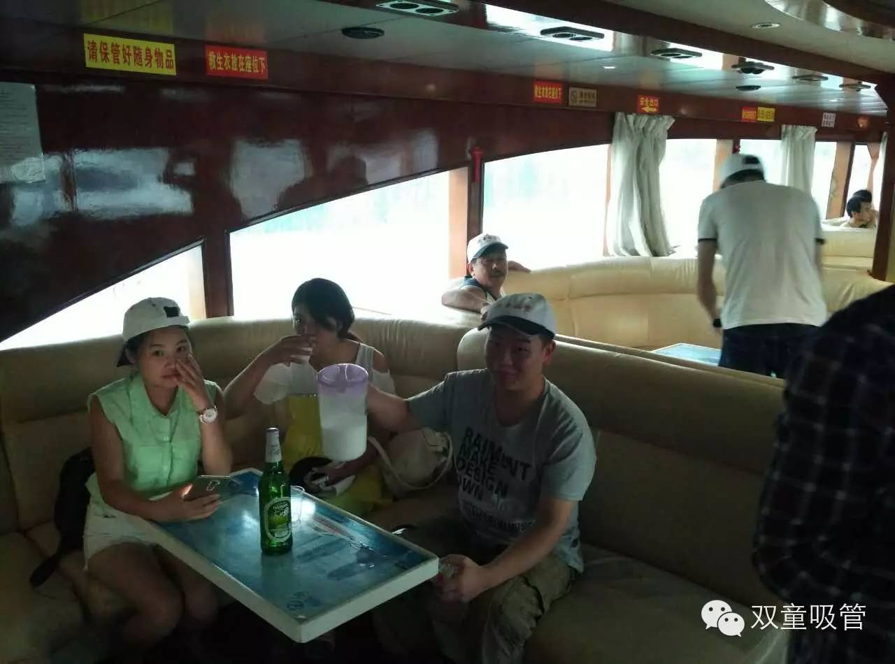 游艇里備有免費的啤酒跟椰奶,但是少了吸管,吸管君真應該帶上幾大包吸管來,免費向三亞的游客們發(fā)放,這得是多好的廣告啊!