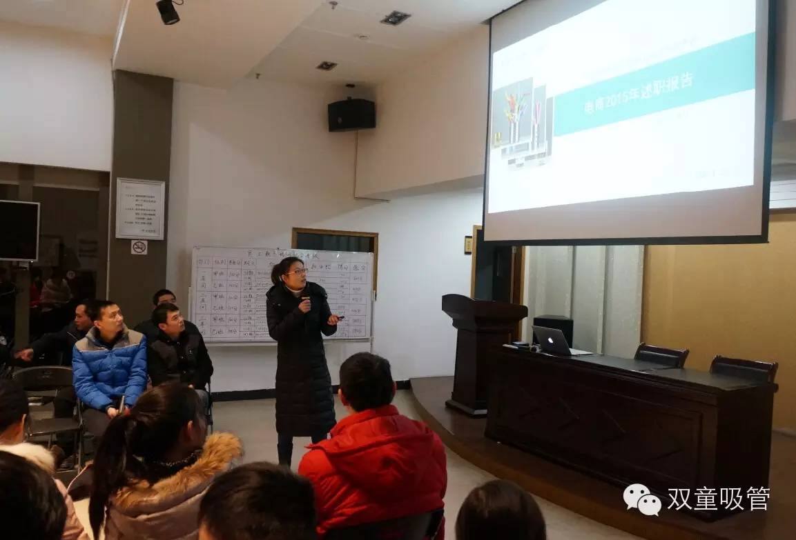 最后,電商科主管焦琴對雙童電商科2015年度工作進行述職。雙童的電子商務(wù),是當家人樓總大力支持并寄予厚望的產(chǎn)品銷售渠道。雙童電商在阿里、天貓、京東、一號店等各大電商平臺都開設(shè)旗艦店,有了這么多平臺的支持,電商科一年來的銷售也是順風(fēng)順水,年初定下的各項指標數(shù)據(jù)也都能完滿達成。