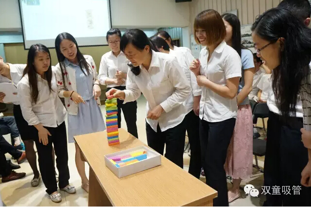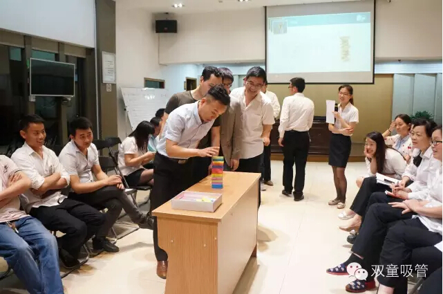 一開場,咱們的焦琴講師就安排了一個小游戲:把大家分成五組,由每一組的成員在桌子上擺一塊積木,看哪一組的積木堆積的最多。小心!小心!要倒拉!現(xiàn)場觀眾的聲音此起彼伏,玩游戲的隊員們也是即緊張又興奮,個個笑的都快合不攏嘴了喲!當(dāng)然,這個游戲可不是純粹讓我們來搞笑的!這個游戲告訴我們,團(tuán)隊中一切行為不僅代表你自己,你的作用的行為往往會影響團(tuán)隊的全部!