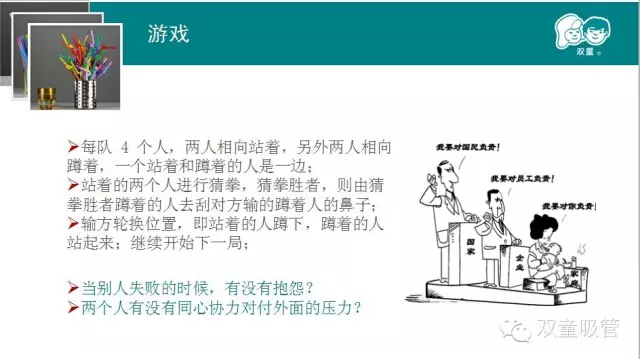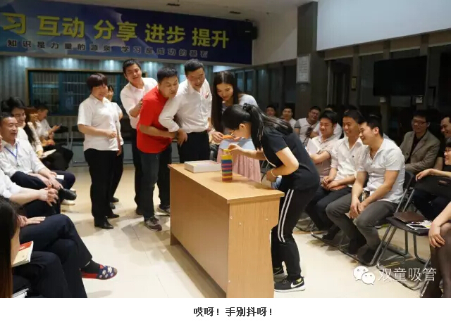 那么如何提升顧客滿意度呢?話題剛落,游戲又要開始啦!每隊派出4 個人,兩人相向站著,另外兩人相向蹲著,站著的兩個人進(jìn)行猜拳,猜拳勝者,則由猜拳勝者蹲著的人去刮對方輸?shù)亩字说谋亲??!笆^剪子布,贏啦!我來刮咯?” 游戲現(xiàn)場的精彩對話更是惹得現(xiàn)場觀眾哄堂大笑!游戲過后,大家也明白了團(tuán)體活動時,別人失敗時不該有抱怨,應(yīng)該同心協(xié)力對付外面的壓力。遇到問題時,我們應(yīng)該勇于承擔(dān)責(zé)任,及時處理好問題!
