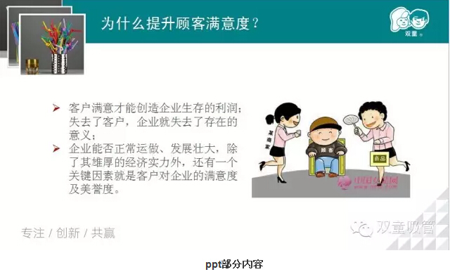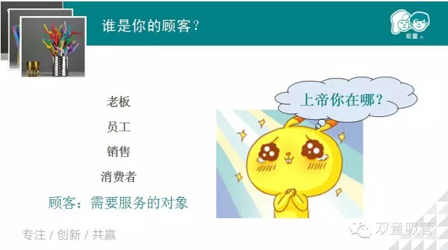 接下來,講師從“誰是你的顧客”來展開話題討論,顧客其實就是你所要服務(wù)的對象,我們要了解顧客真正所需要的是什么?除了優(yōu)質(zhì)的產(chǎn)品,更是滿意的服務(wù)??蛻魸M意才能創(chuàng)造企業(yè)生存的利潤;失去了客戶,企業(yè)就失去了存在的意義。