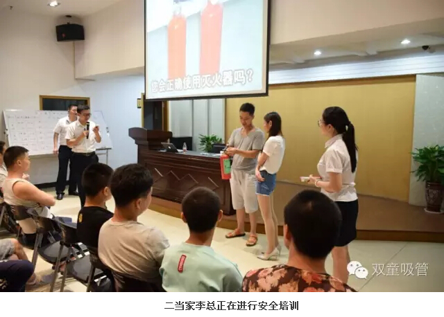 在安全月中,“雙童”會分批次開展員工大會,二當家李二橋、李秀前廠長會同員工們進行深刻的安全教育培訓,舉了不少近年來發(fā)生的消防事故案例,讓員工深刻直觀地認識到防火重要性。